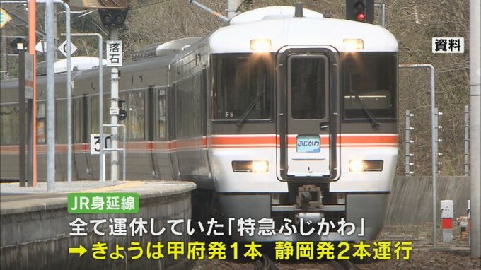JR身延線では全て運休していた特急「ふじかわ」のうち、きょう15日は甲府発が1本、静岡発が2本運行します。