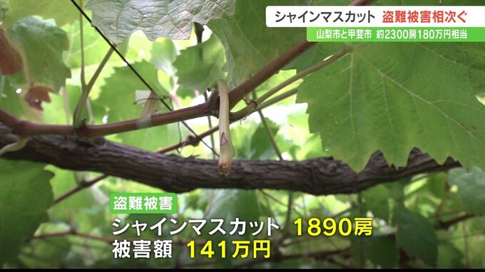 警察によりますと、盗まれたのはシャインマスカット1890房で、被害額は141万円に上ります。