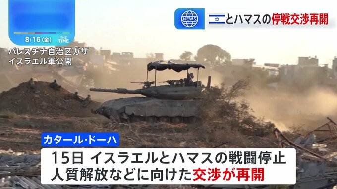 イスラエルとイスラム組織「ハマス」の停戦交渉が15日に再開しました。交渉の結果は、イスラエルへの報復攻撃を明言しているイランの判断にも影響を与えるとみられます。ロイター通信によりますと、イスラエルとハ…