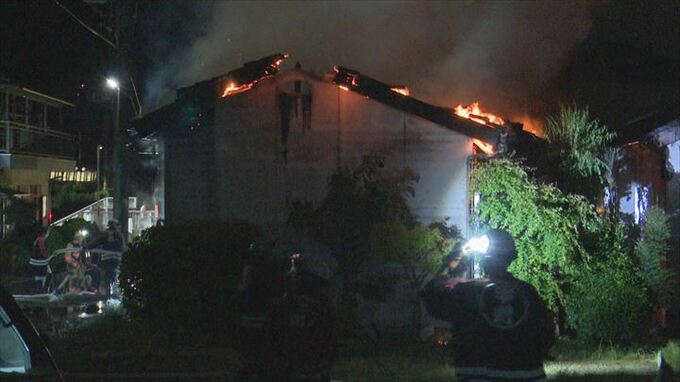 15日夜、山梨県甲州市でアパート1棟を全焼する火事があり、80代の男性1人が両足にやけどをしました。