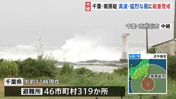 非常に強い台風7号について、まもなく千葉県が暴風域に入る見込みです。千葉県南房総市から中継です。南房総市では風が強くなってきていて、雨粒が顔に強く当たるのを感じます。千葉県内では午前11時半までに、▼…
