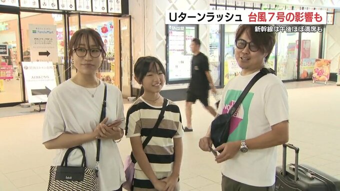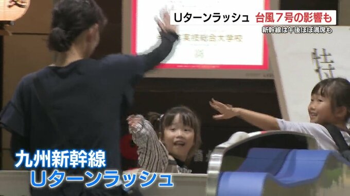 九州新幹線では、きょう(16日)から帰省のUターンラッシュが始まりました。熊本駅には、家族との別れを惜しむ人たちのほか、台風7号の影響で、予定の変更を余儀なくされた人たちの姿もありました。