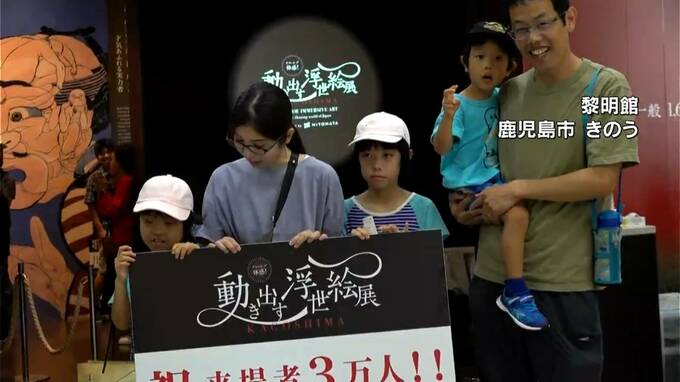 鹿児島市で開催中の「イマーシブ体感!動き出す浮世絵展」の来場者が、3万人を超えました。「3万人目のお客様お迎えしました、拍手お願いします!」3万人目の来場者は、薩摩川内市から来た家族5人で、記念品として…