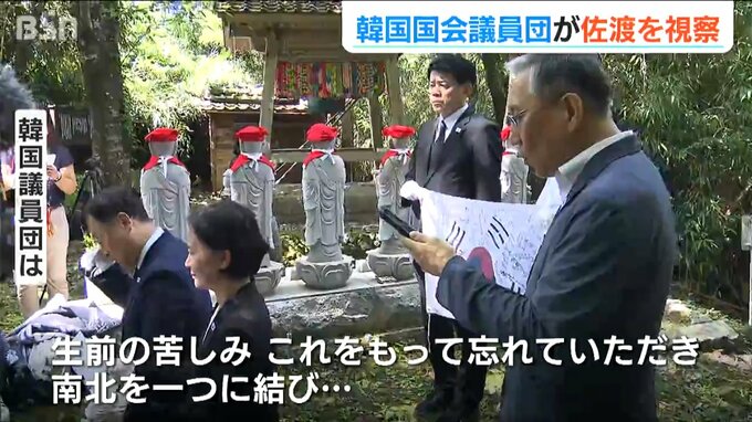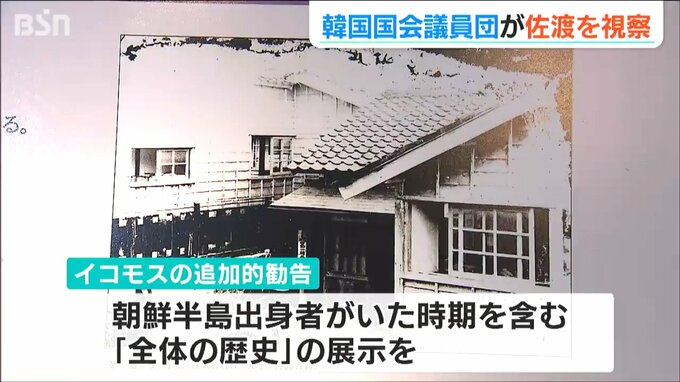 世界遺産登録が決まった「佐渡島の金山」について朝鮮半島出身者の強制労働があったと主張する韓国の国会議員団が16日、佐渡を視察しました。登録については歓迎する姿勢を示したものの、「朝鮮半島出身者の強制動員」という文言を明示することなど、日本政府への要求は終わっていません。