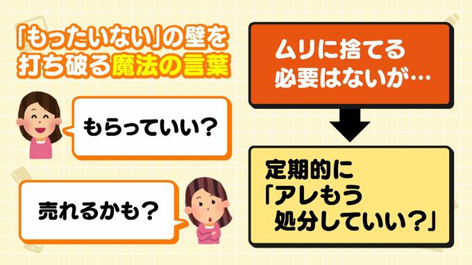 ――いっぽう、『実家片付け事件簿』という例も紹介しましょう。CASE1は、「片づけに立ちはだかる…親世代あるある『もったいないの壁』」これは、どうしたらよい?