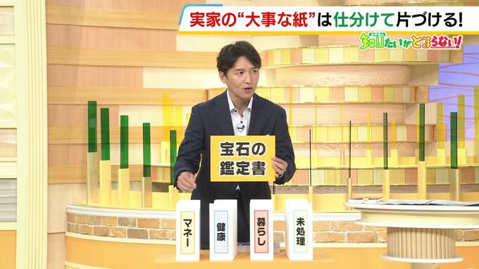 ――では具体的に見ていきましょう。「宝石の鑑定書」ならマネーに入ります。「診察券」なら健康に入ります。では「パスポート」は?「暮らし」ですかね。「家電の保証書」、これも「暮らし」ですね。「年賀状」はどうでしょうか?