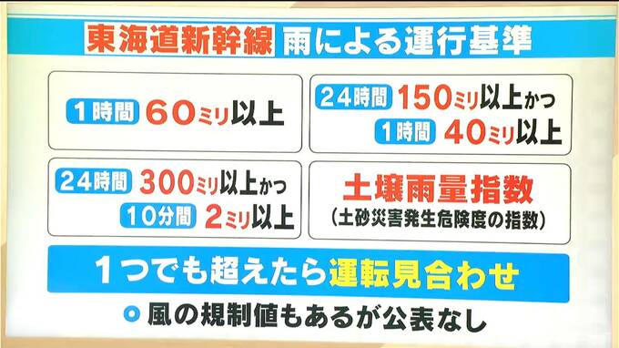 雨による「運行基準」というのが東海道新幹線にはあります。