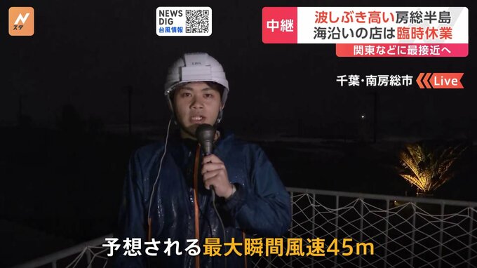 非常に強い台風7号は、あす明け方にかけて関東甲信や東北地方に最も接近する見込みで、暴風や高波に警戒が必要です。それでは現場から中継です。千葉県南房総市にいる本木さん。こちらでは日が落ちてきて、風と波…