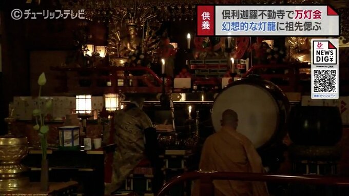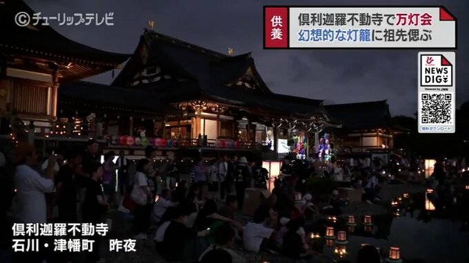 先祖を供養する万灯会が、15日夜、石川県津幡町の倶利迦羅不動寺で行われました。