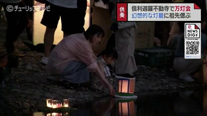 訪れた参拝者は先祖や大切な人に心を寄せながら水面に灯籠を浮かべていきました。