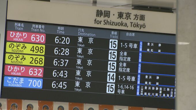 (平岩洵人記者)「午前6時前のJR名古屋駅です。東海道新幹線の運転再開を前にして、新幹線の改札前には列ができてます」