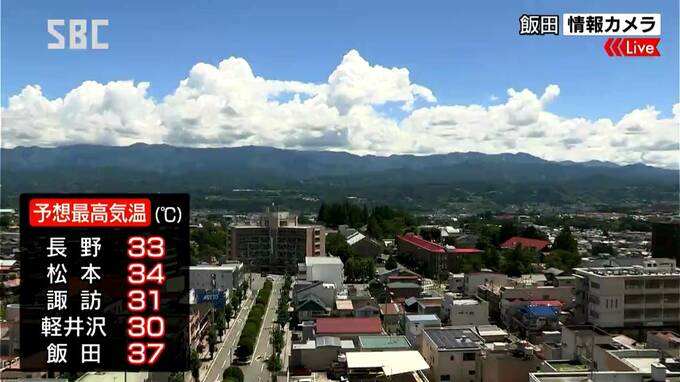 長野県内は飯田の予想最高気温が37度となるなど厳しい暑さとなっていて、気象庁などは「熱中症警戒アラート」を出して、対策を呼びかけています。飯田市の気温は17日午前11時の時点ですでに33.7度となっています…