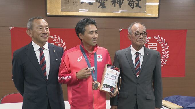 パリオリンピック™の総合馬術団体で銅メダルを獲得した大岩義明選手が名古屋市の母校を表敬訪問しました。