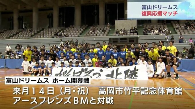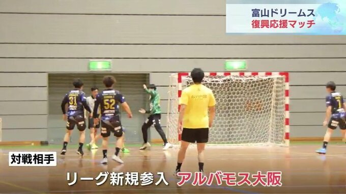 ハンドボールを通じて能登半島地震の復興を後押ししようと、富山ドリームスが復興マッチを行ないました。