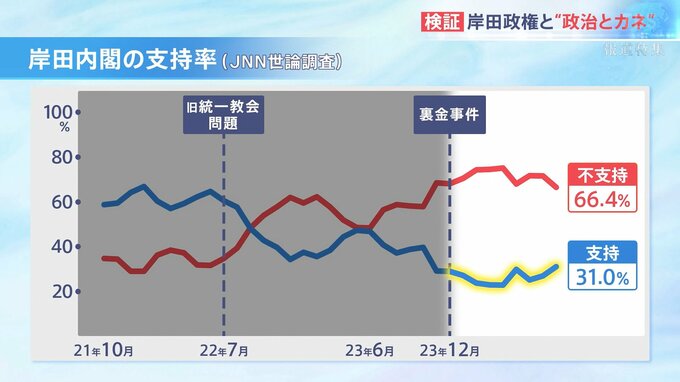 この裏金問題で岸田政権の支持率は低落傾向に拍車がかかった。