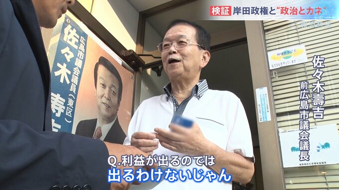 佐々木前市議会議長は岸田総理の選挙区、広島1区の住民で岸田総理が祝賀会の発起人となって生じた利益は住民への寄付行為にあたるという