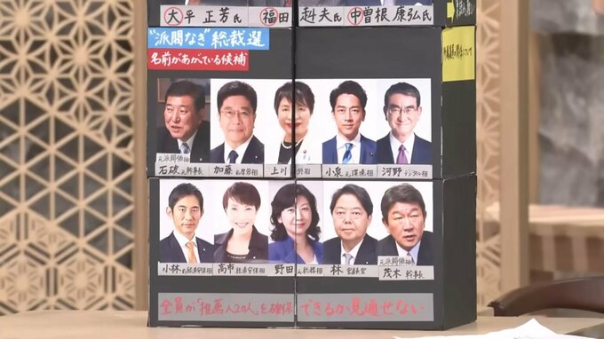 さて、今回は裏金事件で派閥の解散表明が相次ぐ中での総裁選ですが、名前が挙がっている候補を見ますと、派閥領袖の経験者は石破元幹事長と茂木幹事長だけ。小泉進次郎氏は、派閥に所属したことがありません。派閥単位での締め付けや候補者を調整する力が弱まるなか、この10人全員が「推薦人20人」を確保できるかも見通せない状況です。