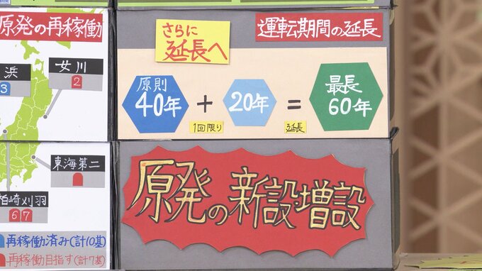 2つ目が、古い原発の「運転期間の延長」です。「原則40年、最長60年」をさらに延ばす方針も示しました。