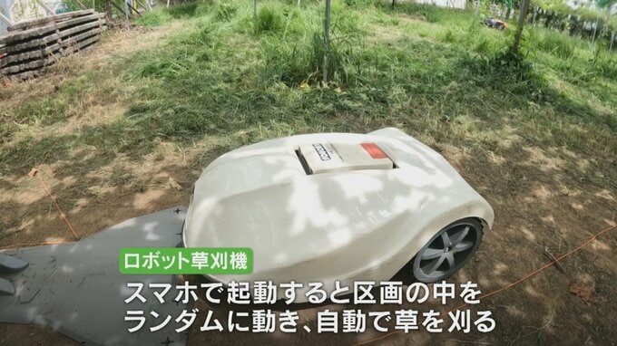 こちらのスピードは人が草刈りをする場合と同じくらいで、体力的な負担の軽減や作業中の転倒といった事故の防止などが期待できるとしています。