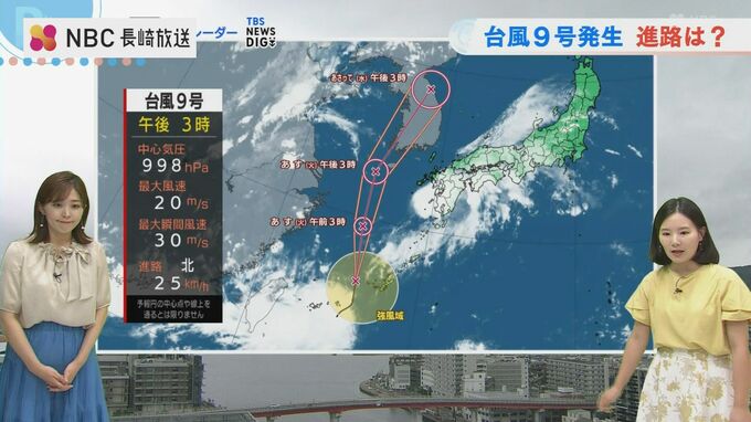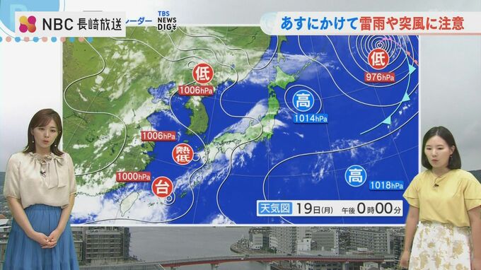 九州西海上には「熱帯低気圧」があり、九州北部地方では大気の状態が非常に不安定になっています。