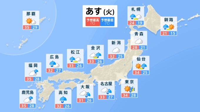 台風9号や上空の寒気など、地域によって背景となる気象状況に違いはありますが、20日は広い範囲で雨が強まりそうです。