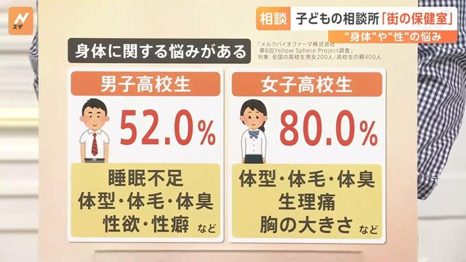 思春期の子どもたちが悩みごとを相談できる「街の保健室」という民間の施設が東京都内にあります。学校の友だちや家族にも言いづらい性の悩みなど、様々な相談が寄せられています。