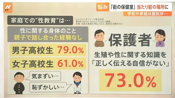 「性に関する身体のことを親子で話し合ったか」という調査によりますと“経験なし”が▼男子高校生79.0%、▼女子高校生61.0%で、主な理由として「気まずい」「恥ずかしい」といったことが挙げられたそうです。