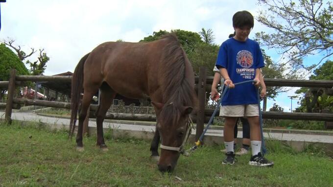 乗馬にも挑戦し子どもたちはヨナグニウマの生態や特徴について学びを深めました。