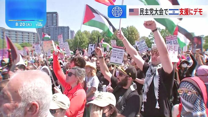 アメリカ大統領選に向けた民主党の全国大会が開かれているイリノイ州シカゴで、イスラエルへの支援を続ける民主党政権に対する抗議デモが行われました。記者「州内外から多くの人が集まっています。ものすごい熱気…