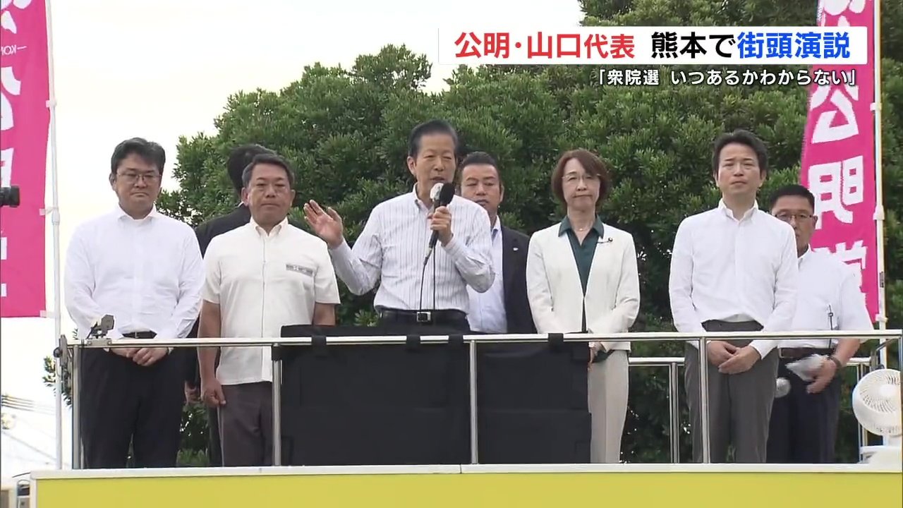 公明党の山口那津男(やまぐち なつお)代表が熊本を訪れ、街頭演説で解散・総選挙を意識して支持を呼びかけました。