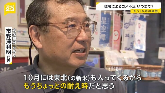 「もう2か月ぐらいの辛抱だと。10月には東北(の新米)も入ってくるから、もうちょっとの耐え時だと思う」