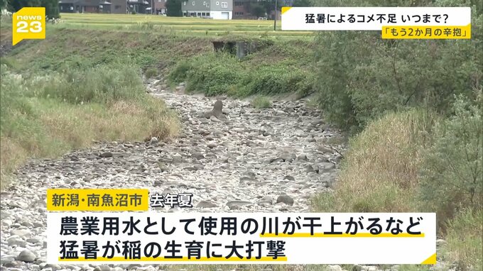 米どころで有名な新潟県南魚沼市では、2023年夏に、農業用水として使っている川が干上がるなど、猛暑が稲の生育に大きな打撃をもたらしました。
