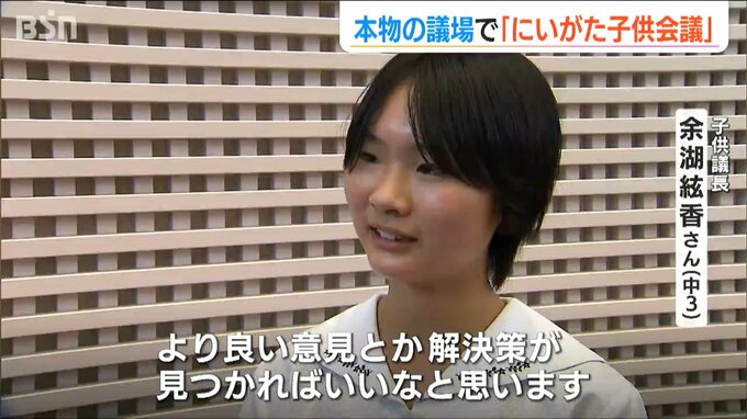 【子供議長 余湖絃香さん(中三)】「きょう、来て年齢が低い子もいたので、そういう子が災害とかエネルギーとか観光について若いうちから考えることで、より良い意見とか解決策が見つかればいいなと思います」