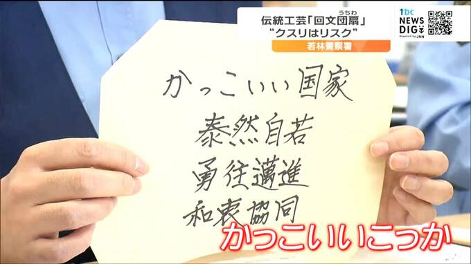 地域の伝統工芸を学ぶ研修会が19日、若林警察署で開かれ、署員がうちわを手づくりしました。うちわに書いたのは、上下どちらから読んでも同じ意味になる回文です。「鎚先て我慢天魔が出来ざりや」上下どちらから読…