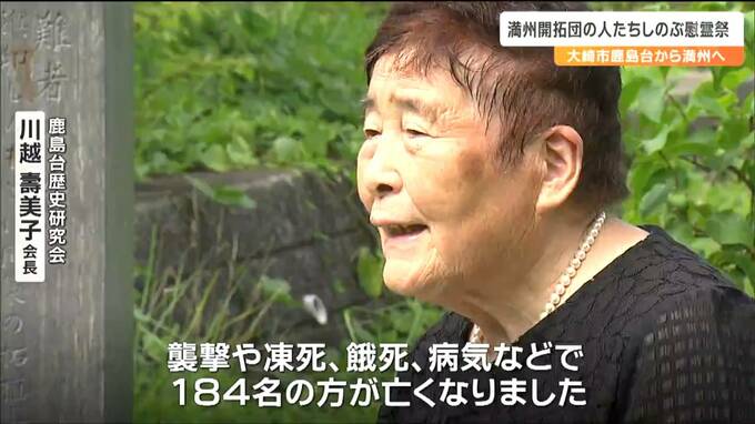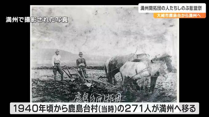 戦時中、農業移民として中国の満州に渡り、過酷な環境の中亡くなった人たちを偲ぼうと、宮城県大崎市鹿島台で20日、慰霊祭が開かれました。