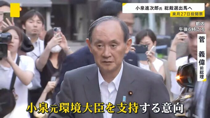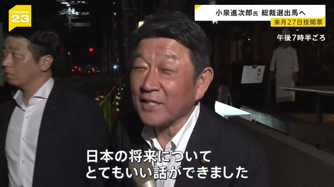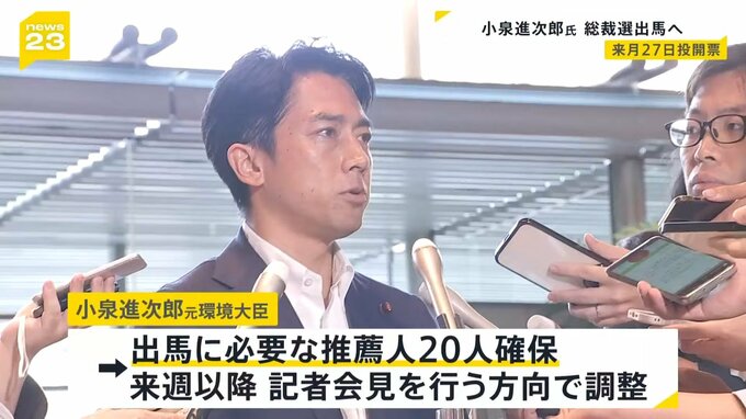 小泉氏は20日までに総裁選に立候補する意向を固め、周辺議員に伝えていることが明らかになりました。すでに出馬に必要な推薦人20人は確保していて、来週以降に記者会見を行う方向で調整しています。