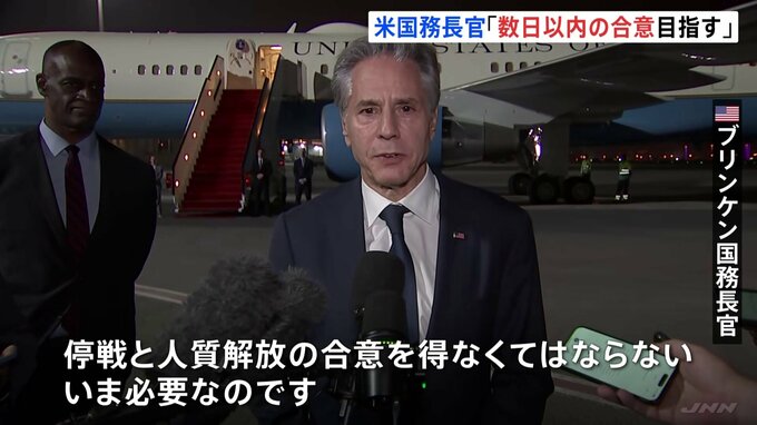 アメリカのブリンケン国務長官は、イスラエルとイスラム組織ハマスの間の停戦などをめぐる交渉について、数日以内の合意を目指す考えを強調しました。ブリンケン国務長官は20日、ハマスと直接やりとりをしているカ…