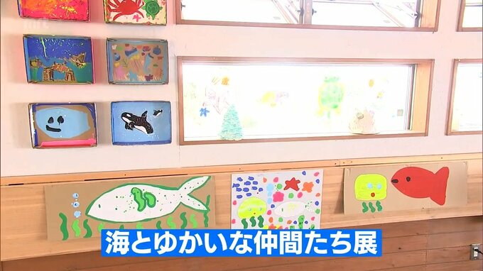 絵を通して、海の環境を考えてもらいたいと子ども達が描いた絵画の展示会が宮崎市青島で開かれています。宮崎市青島の青島ビーチセンター渚の交番で開かれている「海とゆかいな仲間たち展」。これは、宮崎市の絵画…