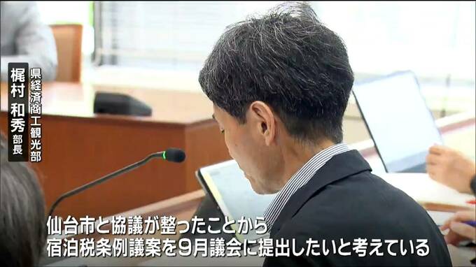 宮城県と仙台市が導入を目指す宿泊税ついて、県は21日、県議会常任委員会で制度案を示しました。県議からは肯定的な意見が多く出た一方、「税を払う県民不在だ」などの声も上がりました。