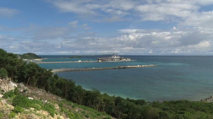 うるま市のホワイトビーチに寄港したのは、アメリカ海軍の大型強襲揚陸艦「アメリカ」です。今月18日午後、東側桟橋に接岸しているのが確認されました。