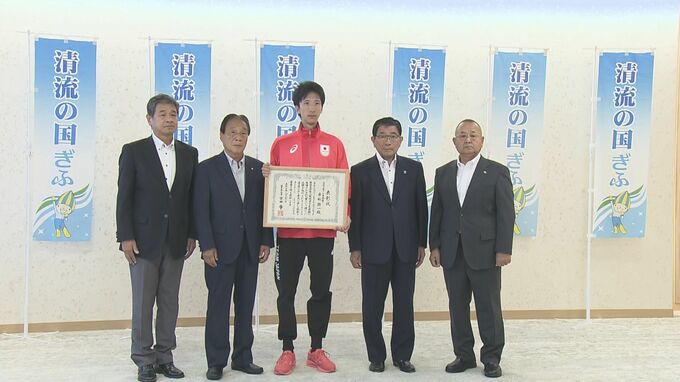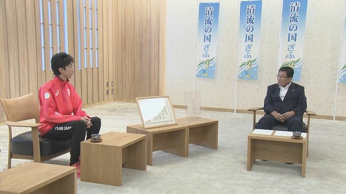 21日は、岐阜県庁を訪れ古田肇知事に結果を報告。赤松選手は初出場したオリンピックで自己ベストとなる2メートル31センチを1回でクリア。