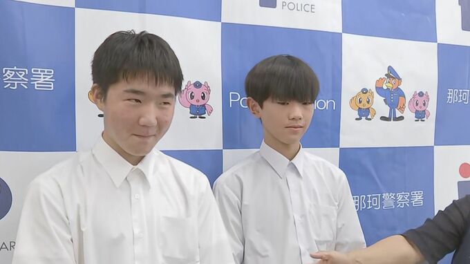きょう午後、警察署で少し緊張ぎみに感謝状を受け取った、野口佳吾さん(14)と廣木悠人さん(15)。カメラマン「笑顔でお願いします。すみません」年頃の中学3年生。笑顔はちょっとぎこちないですが、勇気を出し…