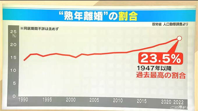 “熟年離婚”の割合は、年々増えていて2022年は23.5%。