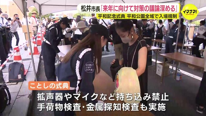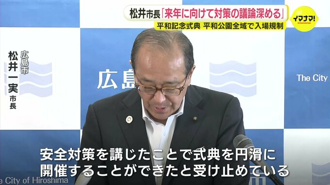 8月6日の平和記念式典では例年より規制が強化され、平和公園全域で入場規制が実施されました。松井市長は「式典を円滑に開催することができた」という考えを示しました。