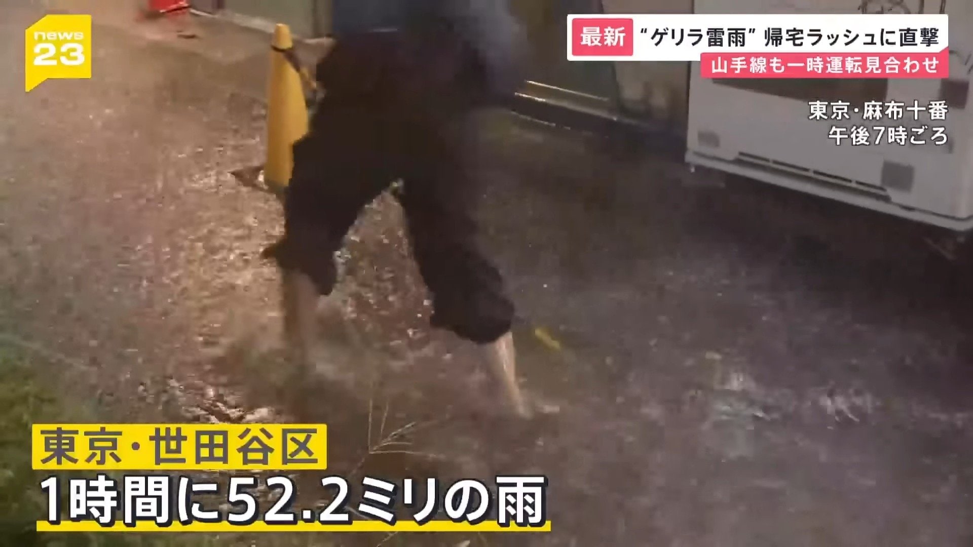 わずか1時間に降った猛烈な雨で多くの影響が出た東京都心。1時間に100ミリの雨が降ったとみられる港区を中心に、世田谷区でも1時間に52.2ミリの雨を観測しています。
