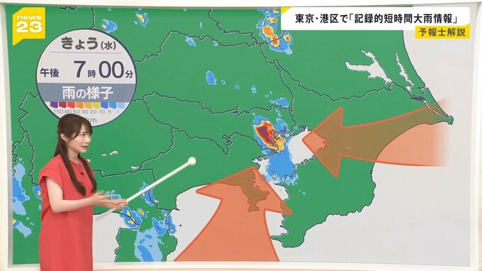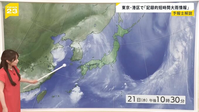 21日の雨を振り返ると、非常に急でした。午後3時ごろにはほとんど何もなかった状態なんですが、急に雨雲が湧いてきました。北から流れてくるような雨雲ではなく、都心上空で湧いて、しかもとどまるという状況だったんです。