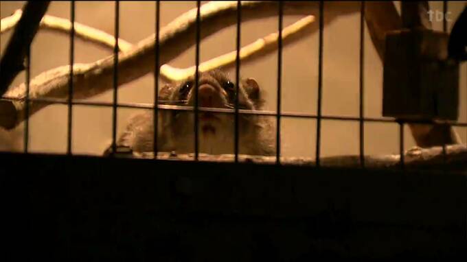 檻の中を動き回るのはムササビです。夜行性のため昼間は寝ていることが多いということですが、夜になると、木の上を元気に移動する姿を見ることができます。