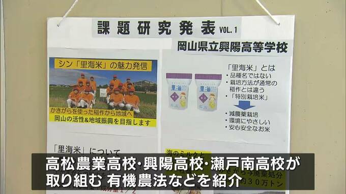 環境にやさしい農業に取り組む高校生たちを紹介するパネル展が岡山市役所で開かれています。岡山市東区の瀬戸南高校の生徒が販売しているのは、自分たちで作った野菜や卵です。岡山市役所で始まった持続可能な農業…