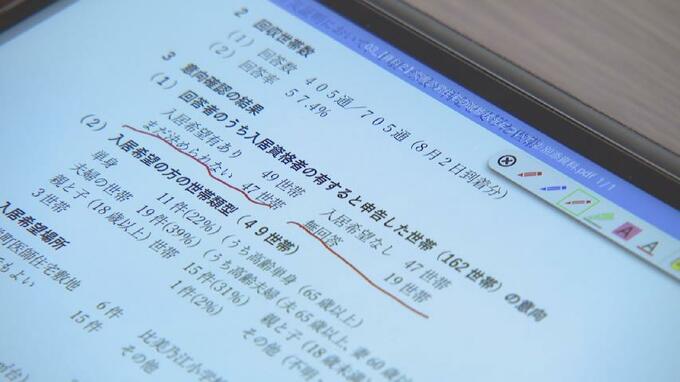 市が先月、入居条件を満たすすべての世帯に行ったアンケート調査では、49世帯が「入居希望あり」と回答。一方で、「まだ決められない」が47世帯、「無回答」が19世帯ありました。