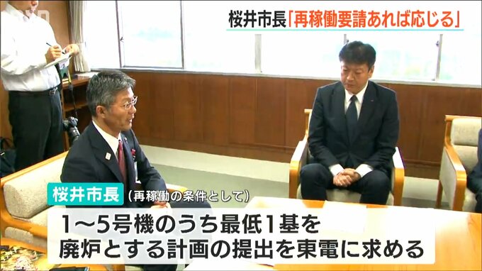 【桜井雅浩 柏崎市長】「条件の一つとして、1~5号機に関する廃炉の計画を2年以内に(提出するよう)お願いしたい」